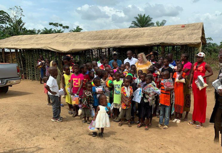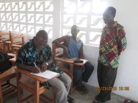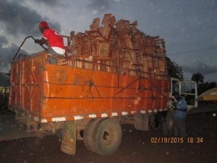 Iman of Bombom Town happily help in getting chairs from the truck in Cape Mount