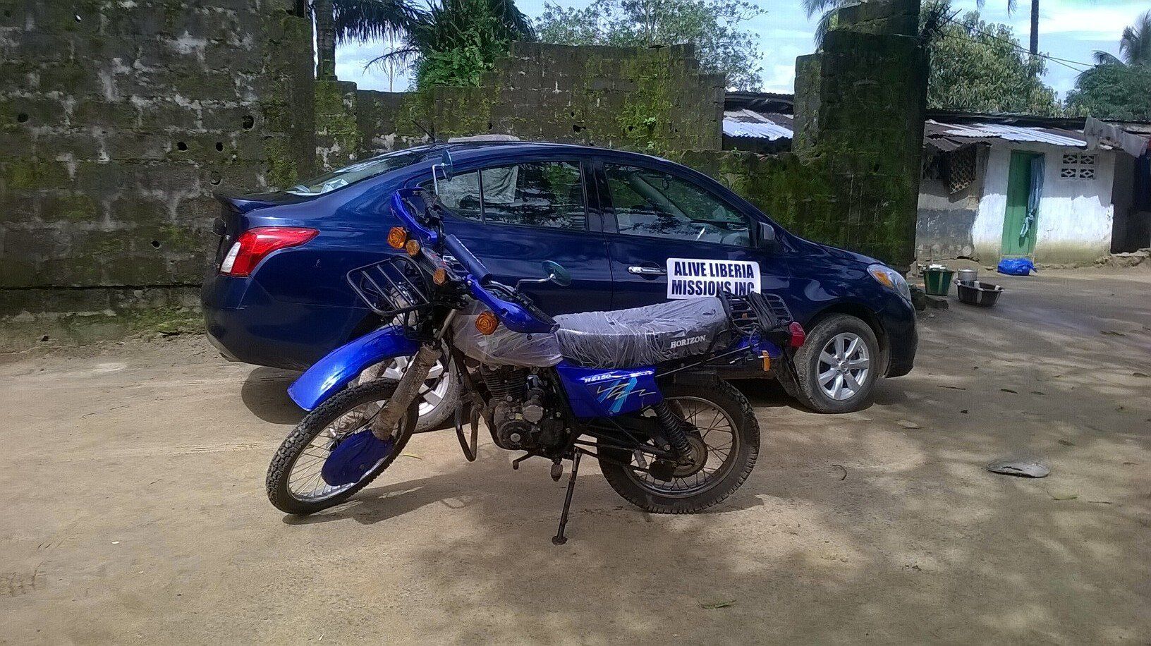 Sept 27 2016 Photo of a new motorbike for a Principle and the car shipped over for Frog.
